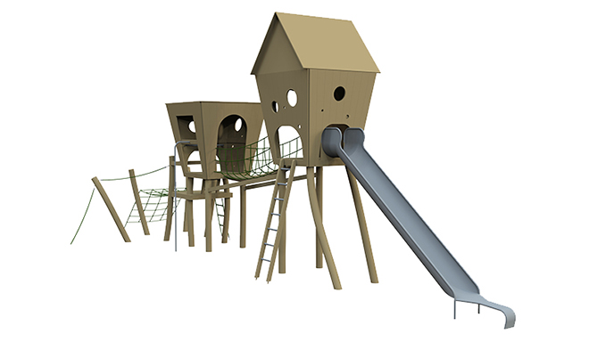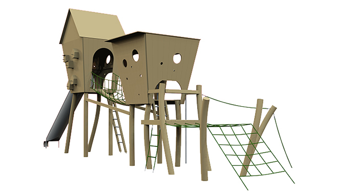 In dit reusachtige vogelhuis worden kinderen op een speelse manier in contact gebracht met de vogelwereld. Kijkgaatjes aan de binnenkant van dit speeltoestel geven kinderen de mogelijkheid om bij de kleinere vogelhuisjes naar binnen te kijken. In de “kijkhut” kunnen informatiepanelen aangebracht worden met leuke en interessante feitjes over de vogels die in en om het Blotevoetenpark wonen.