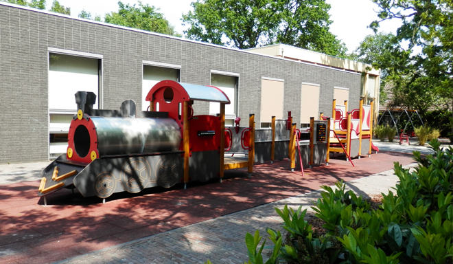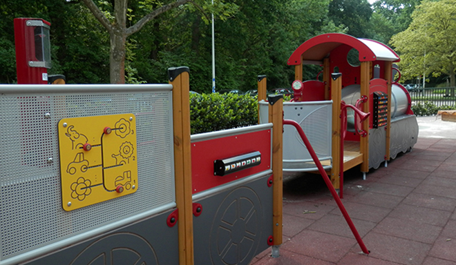 Een speelruimte waarin leerlingen zich zo zelfstandig mogelijk kunnen bewegen en diverse bewegings- en zintuiglijke ervaringen op kunnen doen is het uitgangspunt voor de vernieuwing van de buitenruimte van de Mytylschool De Thermiek in Leiden geweest.