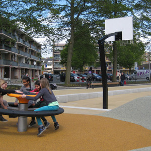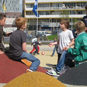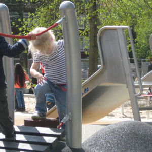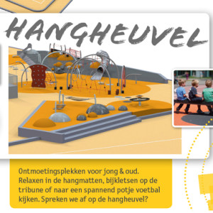 Aan de oostkant van de speelplek, richting het sportgedeelte zijn toestellen geplaatst voor oudere kinderen. De hoogteverschillen in het landschap kunnen meegenomen worden in het spel en kunnen ook gebruikt worden als zit- en hangplekken.